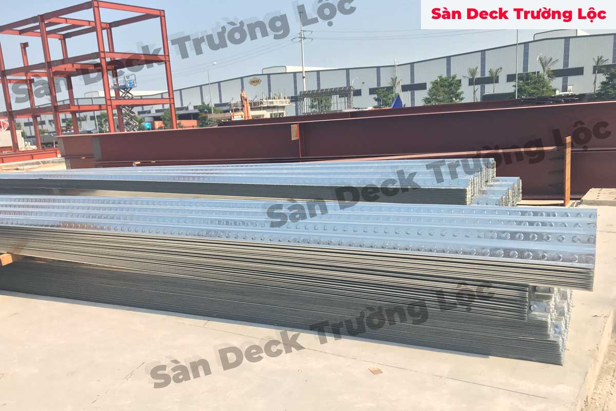 Công Ty CPĐTXL Trường Lộc là đơn vị chuyên: tư vấn lựa chọn, thiết kế, sản xuất và cung cấp tấm tôn đổ sàn decking (sàn deck) theo yêu cầu từng dự án. Chúng tôi có đầu đủ các loại sàn deck h50w1000, sàn deck h75w900, sàn deck h50w930 và các loại sàn deck biên dạng sóng đặc biệt khác như H50w600.