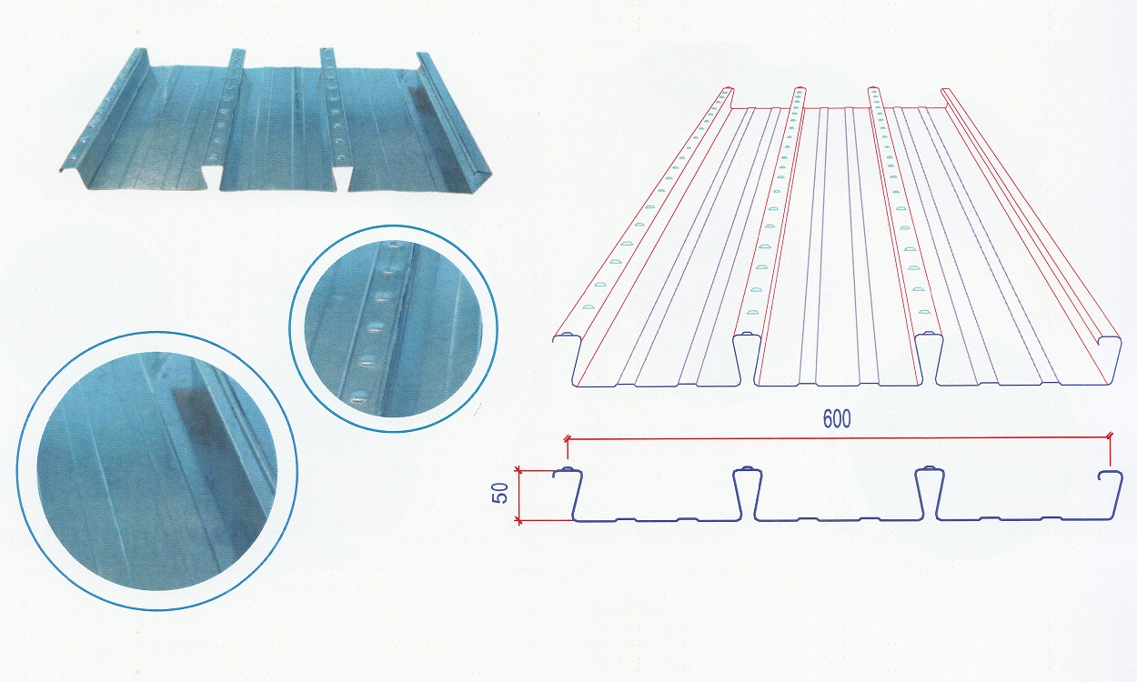 - Sàn deck H50W600 có chiều cao sóng là 50mm, chiều rộng hữu dụng là 600mm